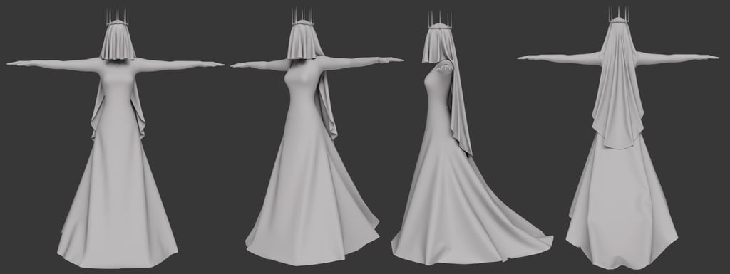 The mysterious and elegant Queen of death is the secondary character of my thesis film Immémoriale. I reused the base model and rig for Joan, using blend shapes to slightly modify the body shape. I had a lot of fun creating the dress in Marvelous Designer and texturing in Substance Painter, especially creating the opacity map to make the edges of the dress and veil transparent. After finalizing animation, I simulated the fabric in Marvelous and then reimported the final alembic into Maya for rendering.